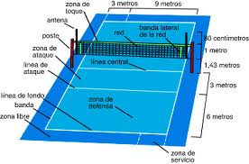 Por otra parte, las líneas de la cancha miden 5 cm. y deben ser de color blanco. Se prohíbe las líneas con materiales sólidos en las canchas al aire libre. Además de las líneas de la cancha, tenemos:
